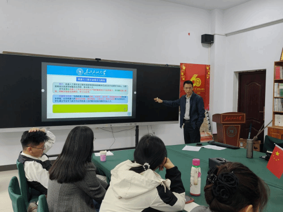 随后,电信系主任陈雷带来“机器人工程专业知识体系解读”,深入剖析了机器人工程专业的知识架构、核心要点及发展趋势,为教师们构建了清晰、系统的专业知识框架,助力教师在教学中精准把握重点,引导学生构建完整的知识体系。