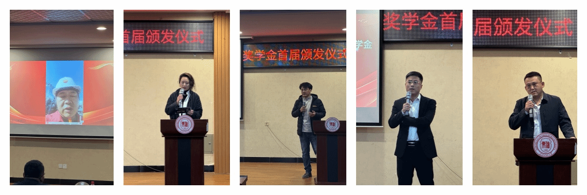 曲倩劼代表校区对刘喜、李宪梅、杨旭、齐春光、李树丰五位校友关心和支持母校教育事业发展表示衷心感谢,对获奖学生表示热烈祝贺。希望同学们以优秀校友为榜样,锻造专业本领,追求卓越。五位校友分享了自身成长经历,表达了对母校的深厚情感,鼓励同学们要坚定信念,不懈努力,做到学以致用,肩负起青年人的责任与使命。