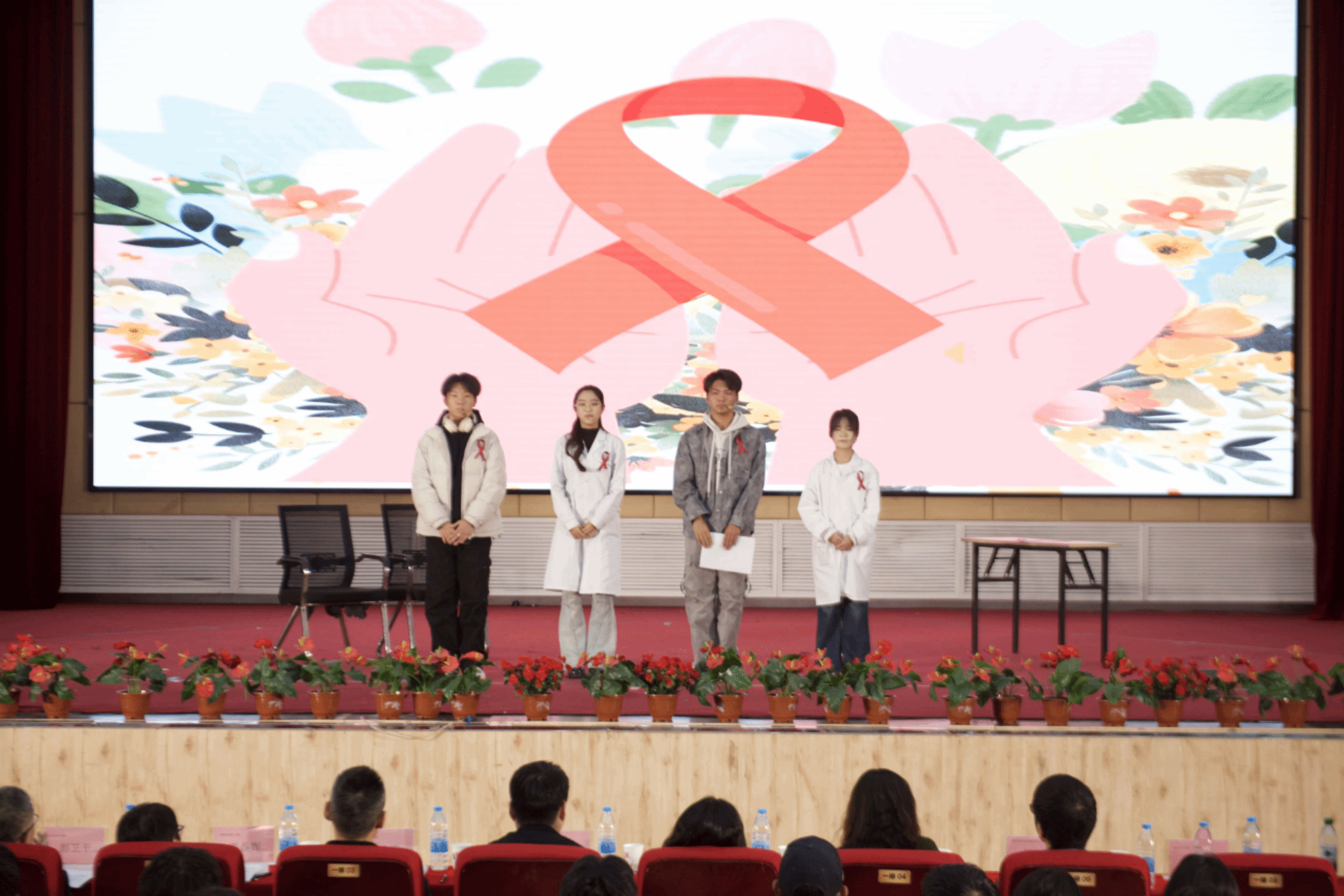 由机器人工程孙嘉成、物联网工程侯博超、旅游管理魏雅琴、软件工程孙丽霞同学组成的参赛团队,在校区团委书记王禹、教师宋智英指导下,从剧本创作到舞台呈现,紧扣主题深挖青年视角,将艾滋病传播途径、预防措施与反歧视理念融入剧情。师生们反复打磨剧本逻辑与台词表达,锤炼肢体语言与情绪张力,通过立体的人物塑造和真挚的情感表达,展现了学子对防艾议题的深度思考,传递对艾滋病感染者的理解与关怀。