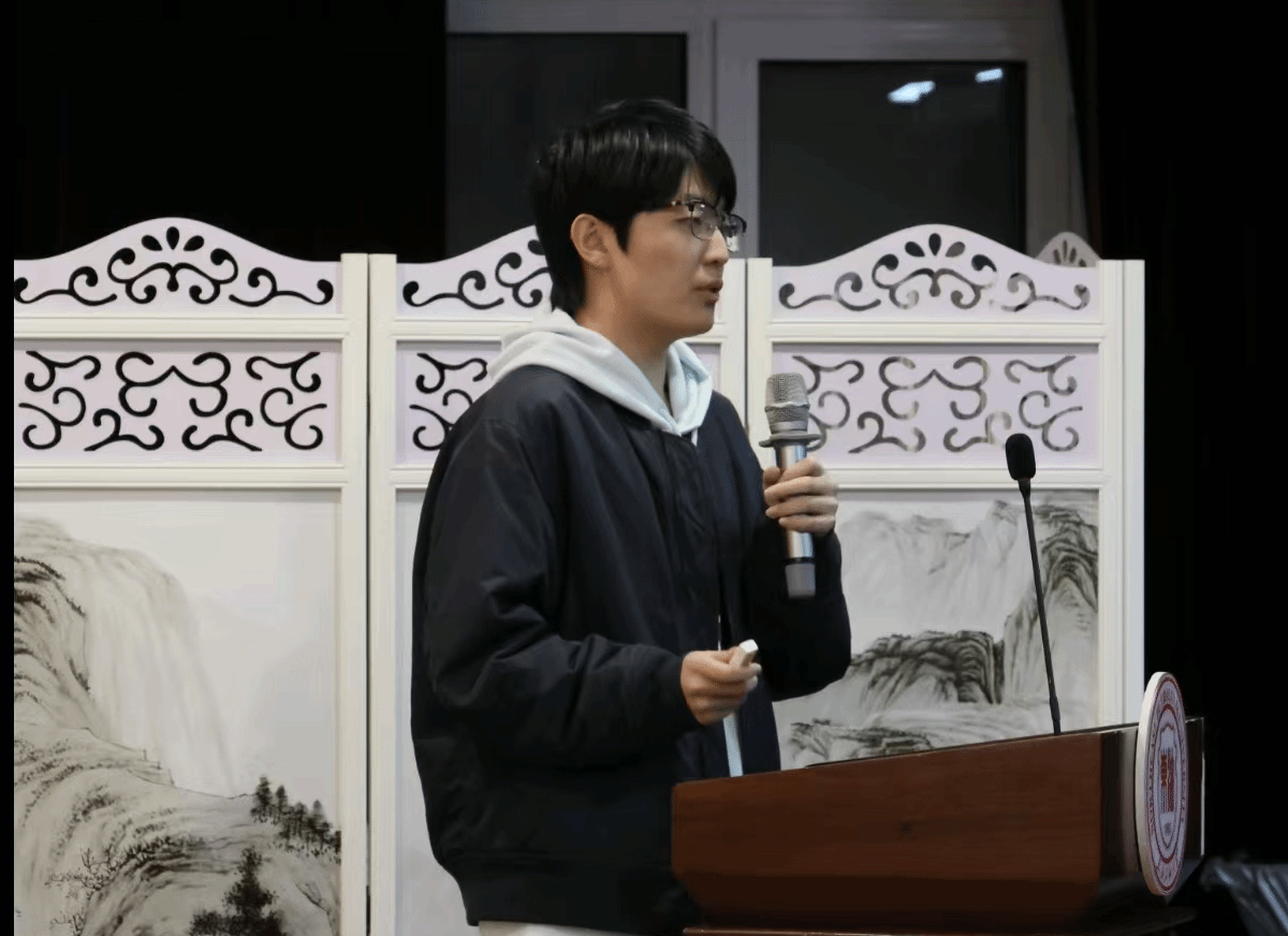 造价23-1班的吴骁同学为大家介绍了节能减排大赛国家三等奖的微生物修复浆料,该研究切实解决长城修复和低碳环保两个问题。