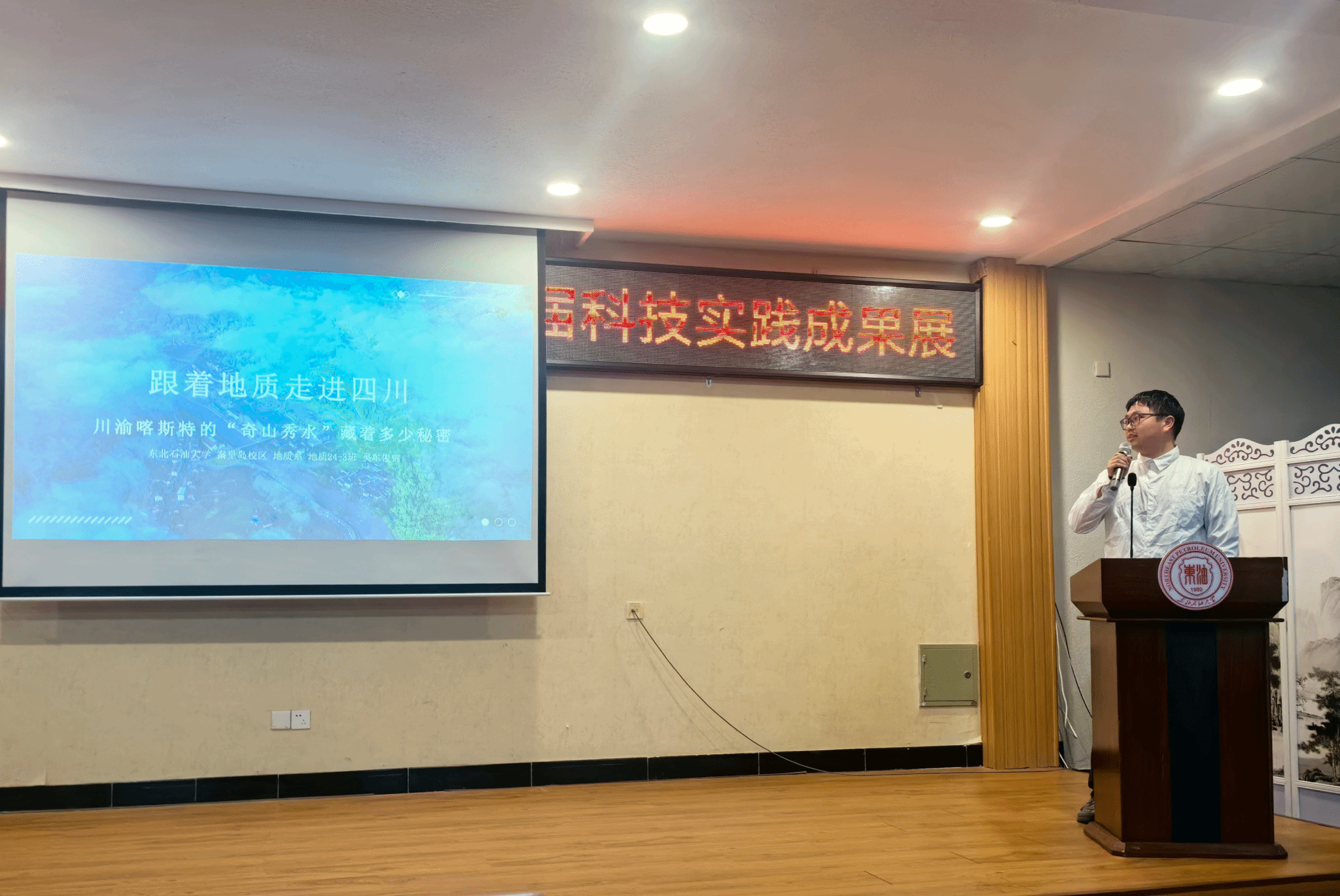 地质系探索家乡地质地貌科普活动冠军,地质24-3班的吴牟俊锦同学为观众展示了川南喀斯特地貌的形成条件和核心特点。