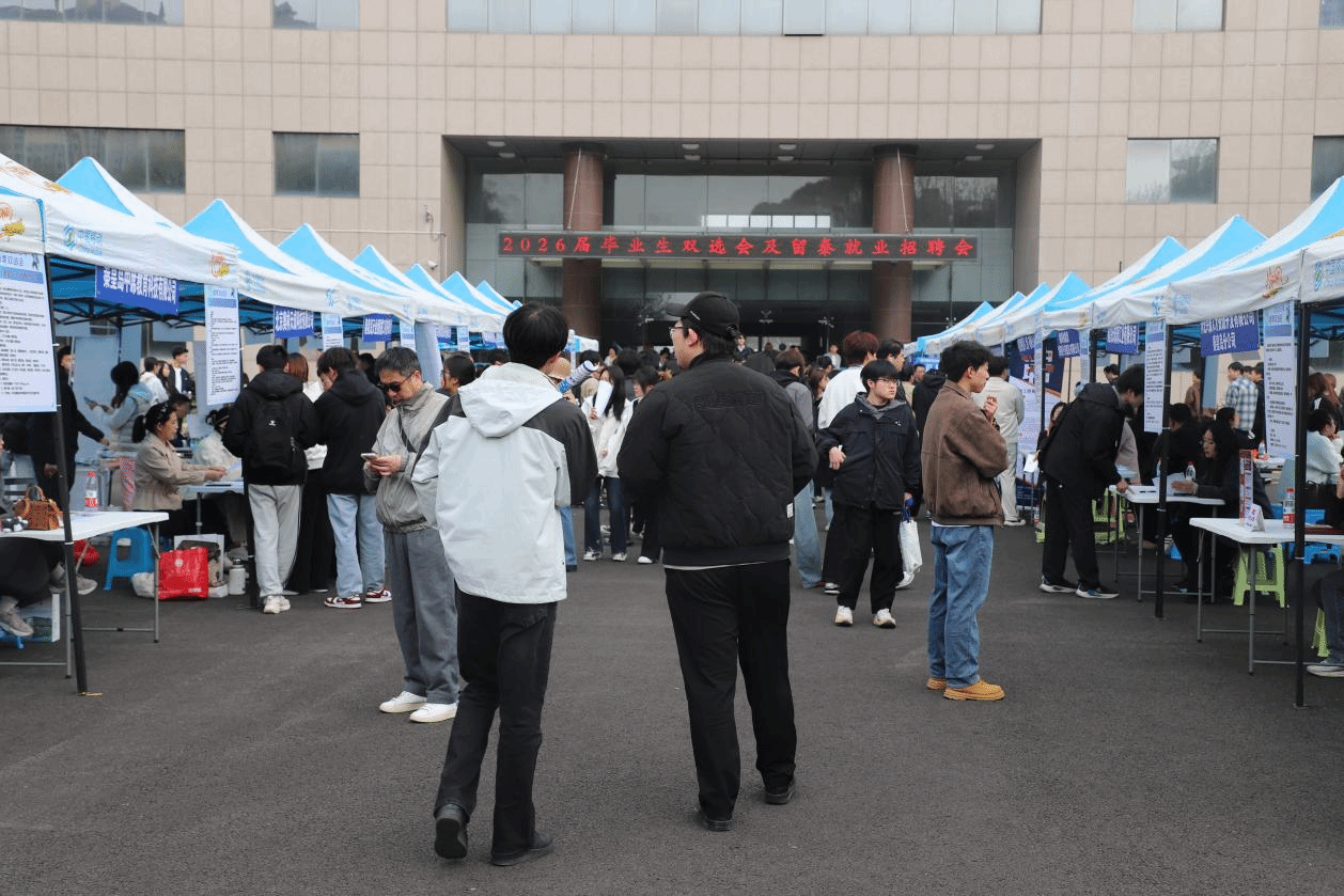 (通讯员 于丽娜)为深入贯彻落实高校毕业生就业工作部署,全力助推2026届毕业生高质量就业,4月17日,校区“春启新程,职创未来”2026届毕业生双选会及留秦就业招聘会在主楼前广场顺利举行。学校副校长杨二龙及校区领导班子亲临现场指导,学生工作部、各系书记、主任及辅导员全程参与。
