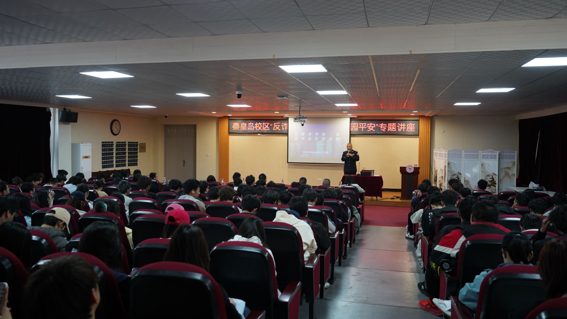 (通讯员 朱晓晴)为切实提升学生防范电信网络诈骗的意识与能力,筑牢校园安全防线,4月22日,校区学生工作部在二教静学报告厅举办“反诈护航青春 守护校园平安”专题讲座,特邀秦皇岛市公安局燕园派出所王宝军警官主讲。校区学生工作部、保卫部、各系辅导员及180余名学生参加。