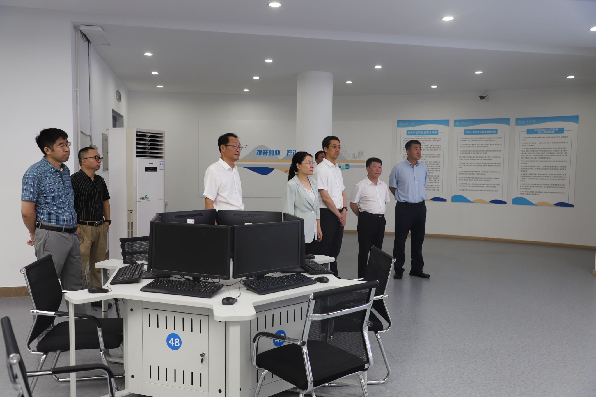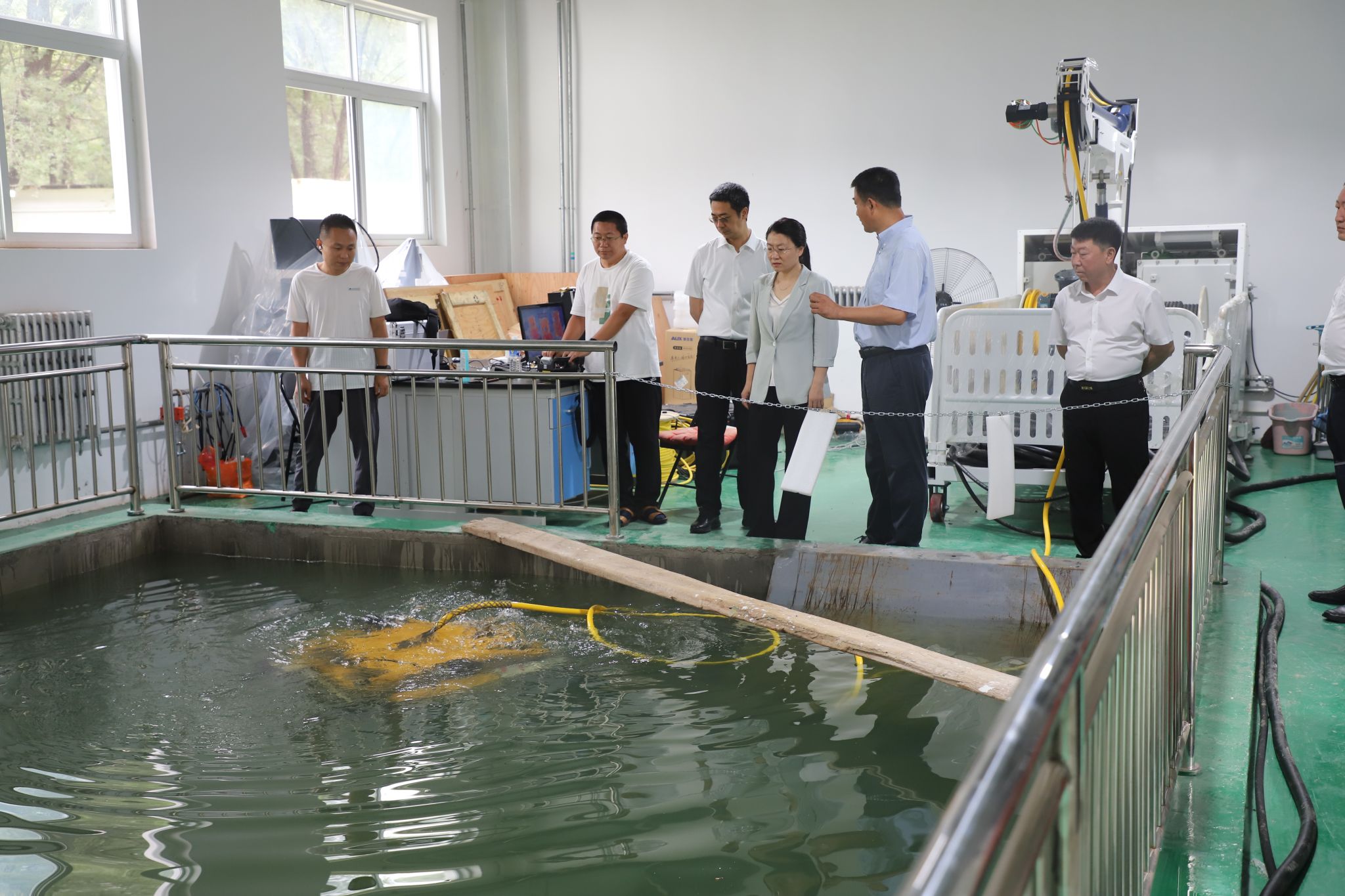 调研中,董宏丽一行实地考察了校园主环路、科技文化交流中心改造项目,参观了智慧旅游实验室、碳储实验室、水下机器人实验室,与工作人员沟通交流,切实了解实验教学环境、课程设置、项目设备研发、场地利用等情况。