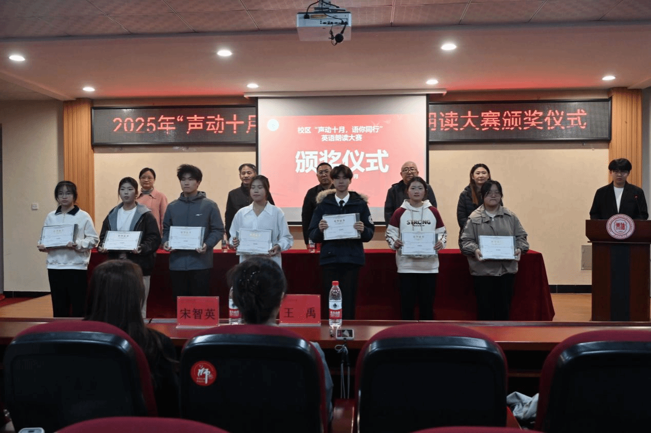 (通讯员 王禹 宋智英)为营造浓厚的英语学习氛围,激发同学们的英语学习热情,10月29日下午,校区举行了2025年英语朗读大赛与英语单词大赛的颁奖仪式。校区党委副书记刘浩然,团委书记王禹,基础课部主任周辉,教师徐国伟、李可贞和王维维参加。