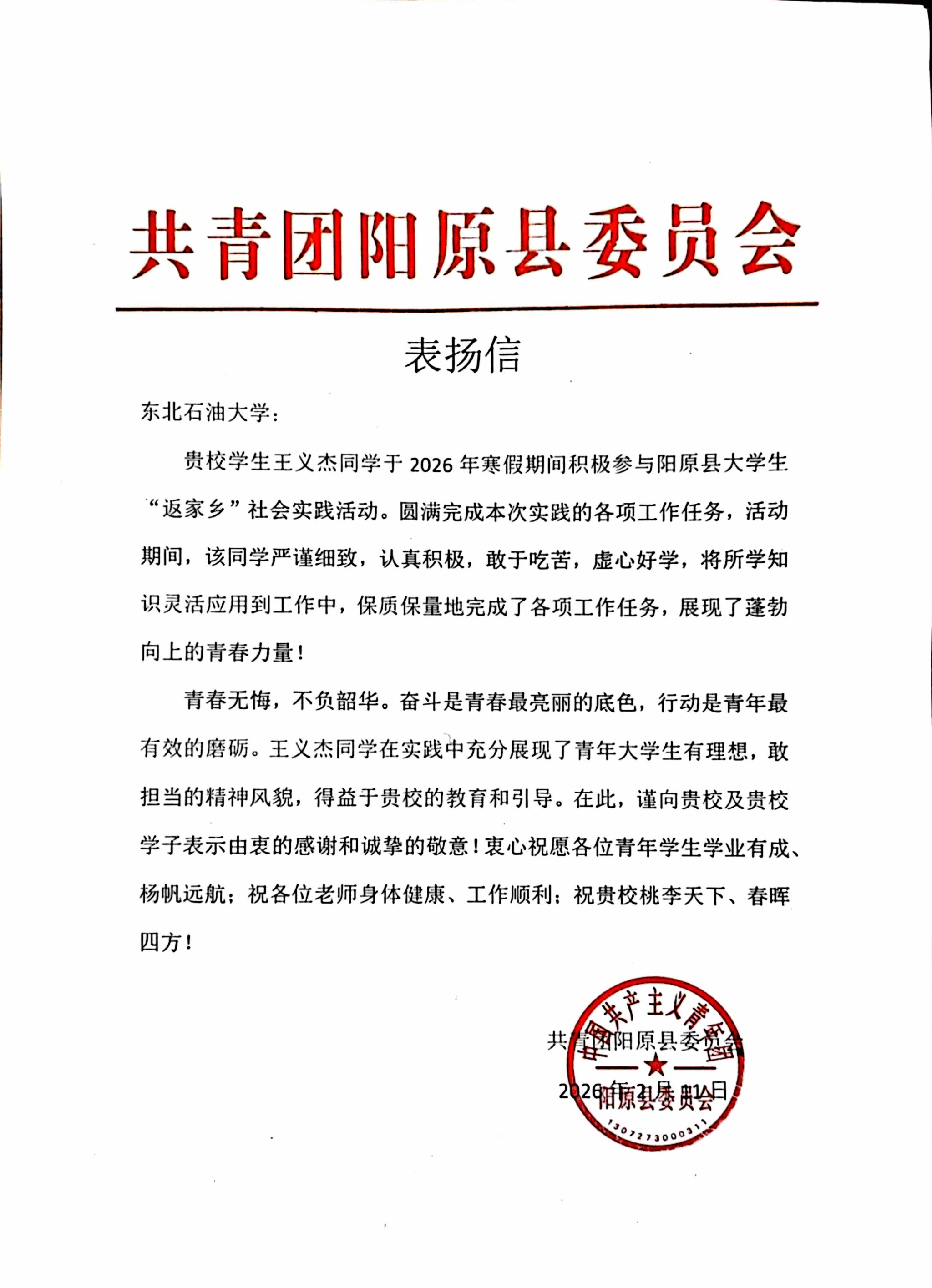 在服务家乡方面,同学们主动作为,将志愿精神带回家乡。海油24级4班王义杰、旅游24级4班牟海燕、物工25级2班易熠鑫、造价24级1班孙铭潞等同学,主动联络当地有关部门,参与家乡春运志愿服务,他们以热情细致的服务获得服务单位的一致好评。其中,王义杰同学在河北省张家口市阳原县火车站连续坚守一线服务岗位28天,受到阳原县团委的表扬。