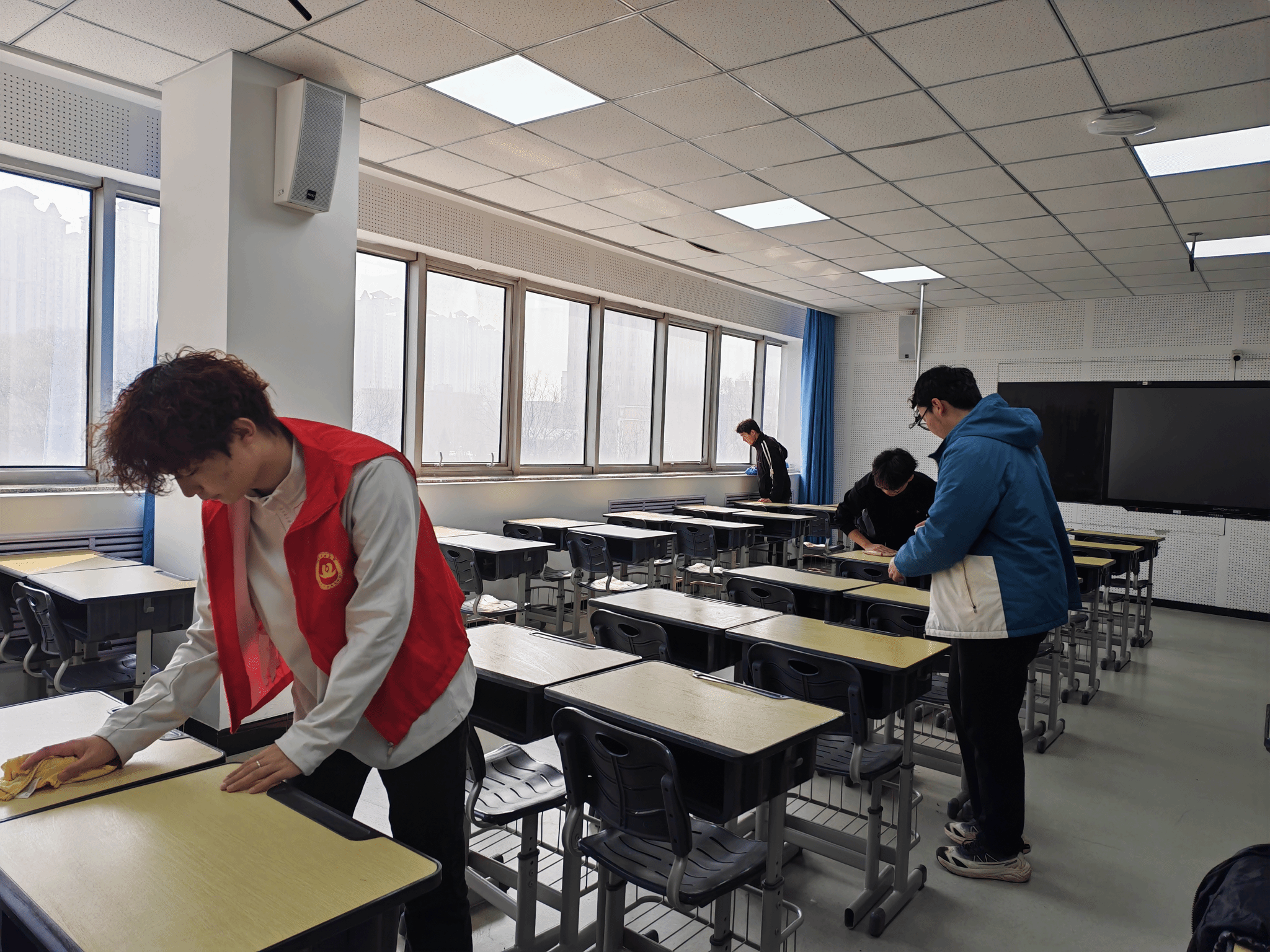 在校园服务方面,为营造整洁舒适的学习环境,青年志愿者协会于3月8日组织110名志愿者,利用一个多小时的时间将所有教室、大庆精神育人展厅、大学生活动厅等公共区域清扫一新,为师生免去第一堂课前清扫灰尘的麻烦,这是青协连续6个学期开展此项活动,志愿者们以实际行动迎接新学期的到来。