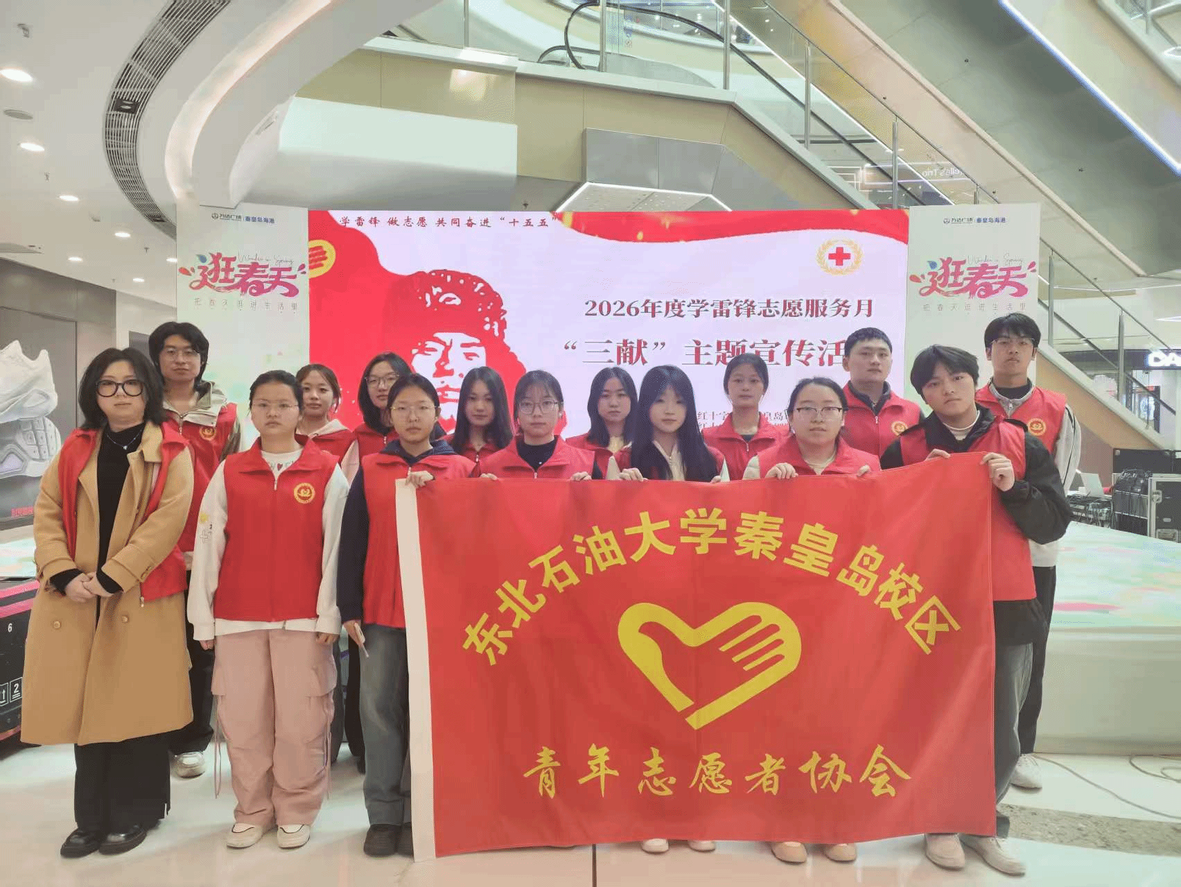 在社会公益活动方面,3月7日,青协造血干细胞捐献志愿服务队受邀参加秦皇岛市红十字会举办的学雷锋“三献”主题宣传活动。青协主席、造干志愿服务队队长陈金宇同学作为志愿者代表上台宣誓,传递青年学子的公益热忱。活动结束后,同学们主动协助主办方完成场地恢复工作,展现了良好的精神风貌。