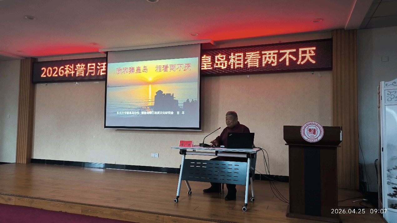 (通讯员 张国华 谢奋全)春和景明,科普正当时。为深入推进2026年河北省社会科学科普月活动,传承地域文化,普及社科知识,4月25日,校区特邀东北大学吉羊教授开展专题科普讲座。河北科技师范学院、河北建材学院代表,秦皇岛各界社会人士,校区副校长曹建刚及100余名师生参加,活动取得圆满成功。
