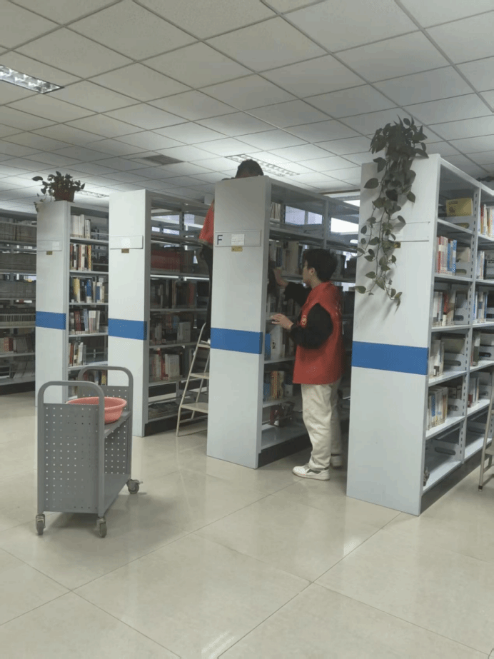 青协组织者根据图书馆库区书架分布情况和图书馆工作人员的要求,将志愿者进行分组分派任务。过程中,志愿者们分工协作、配合默契。细致认真地清扫书架,防止污损书籍,他们还协助整理破损书籍,并与工作人员一道完成登记、分类,全程专注行动,用行动诠释志愿服务精神。经过约一小时的集中清扫,图书馆书架焕然一新,书籍排列整齐有序,借阅环境得到了显著改善。